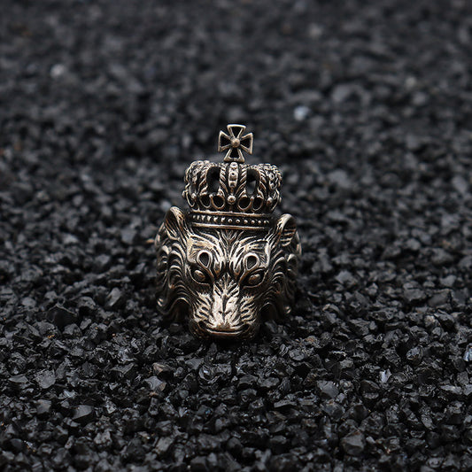 Authentic Crown Lion King Head 925 Sterling Silver Vintage Punk Biker Ring