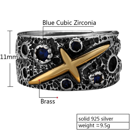 Starry Sky Blue Cubic Zirconia 925 Sterling Silver Vintage Punk Ring