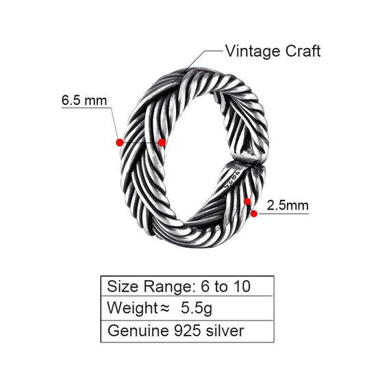 Intertwine 925 Sterling Silver Adjustable Vintage Punk Rock Ring