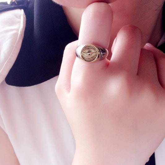 Authentic Opening Gold Eye of Ra 925 Sterling Silver Vintage Punk Ring
