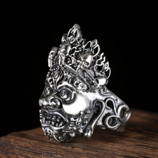 Buddhist Monk 925 Sterling Silver Vintage Steampunk Biker Ring