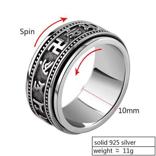 Six Words Mantra Signet Spinner 925 Sterling Silver Vintage Punk Ring