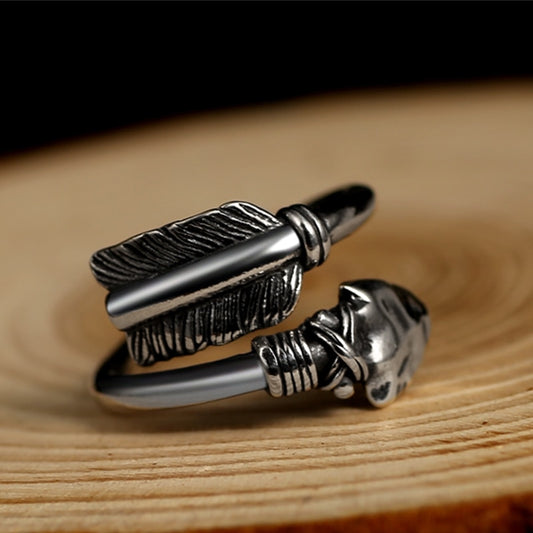 Big Black Cupid's Arrow 925 Sterling Silver Adjustable Vintage Punk Biker Ring