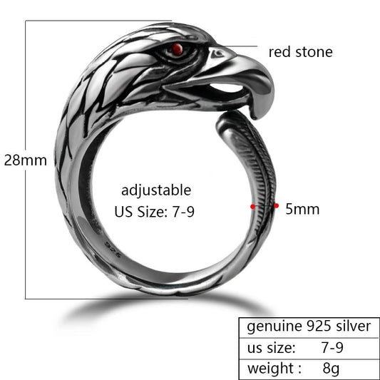 Gothic Animal Red Eye Cubic Zirconia 925 Sterling Silver Adjustable Vintage Punk Rock Biker Ring