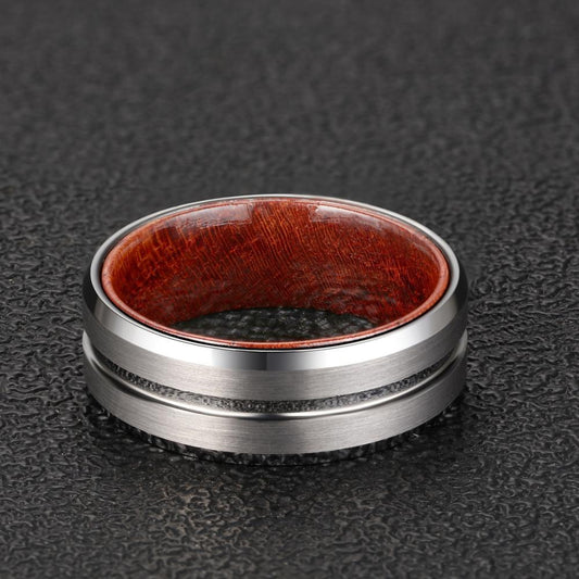 8mm Men Tungsten with Rosewood Interior Comfort Fit Wedding Band