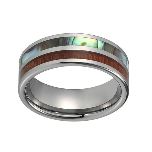 8mm Abalone Shell and Koa Wood Inlay Tungsten Wedding Ring