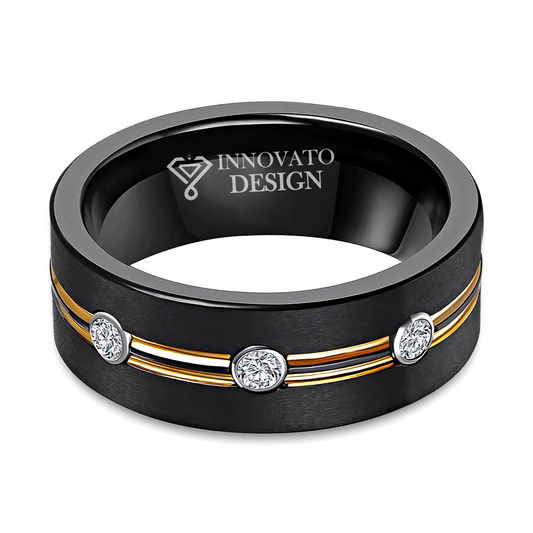 Men's Black 8mm Tungsten Carbide Ring Cubic Zirconia Wedding Engagement Promise Band