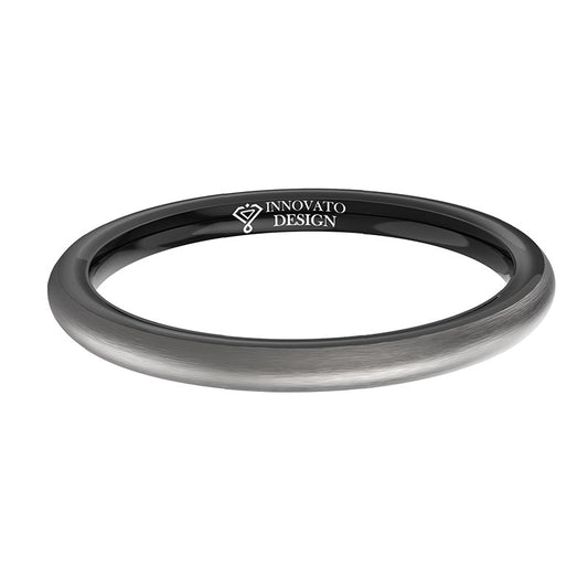 2mm Slim Grey Brushed Matte Finish Outer Band and Polished Interior Tungsten Carbide Ring