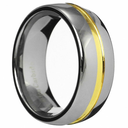 8mm Silver Brushed Yellow Gold Tungsten Ring