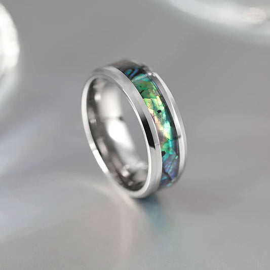 8mm Abalone Titanium Ring Wedding Bands Turquoise Shell Inlaid Comfort Fit