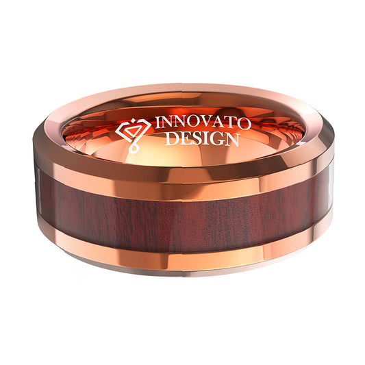 8mm Nature Koa Wood Inlay Rose Gold Wedding Band