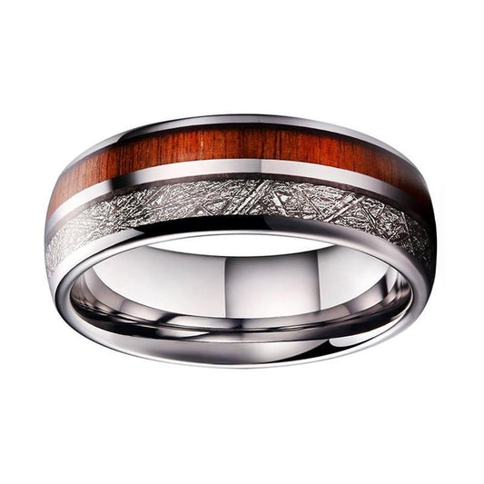 8mm Silver Plated Meteorite and Real Wood Inlay Tungsten Ring