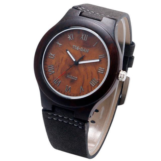 Clean Analog Luxury Wooden Watch with Genuine Leather Band