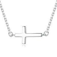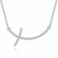 925 Sterling Silver Sideways Cross Pendant with Cubic Zirconia Crystals Necklace