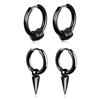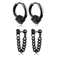 Black or Silver Hoops and Dangles Stainless Steel Hip-Hop Korean Style Earrings