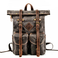 2 Colors Large Capacity Genuine Leather and Canvas Travel Backpack
