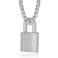 Cubic-Zirconia-Studded Lock Bling Hip-hop Pendant Necklace