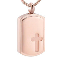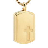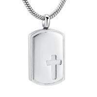 Dog Tag Urn with Engraved Cross Pendant Necklace