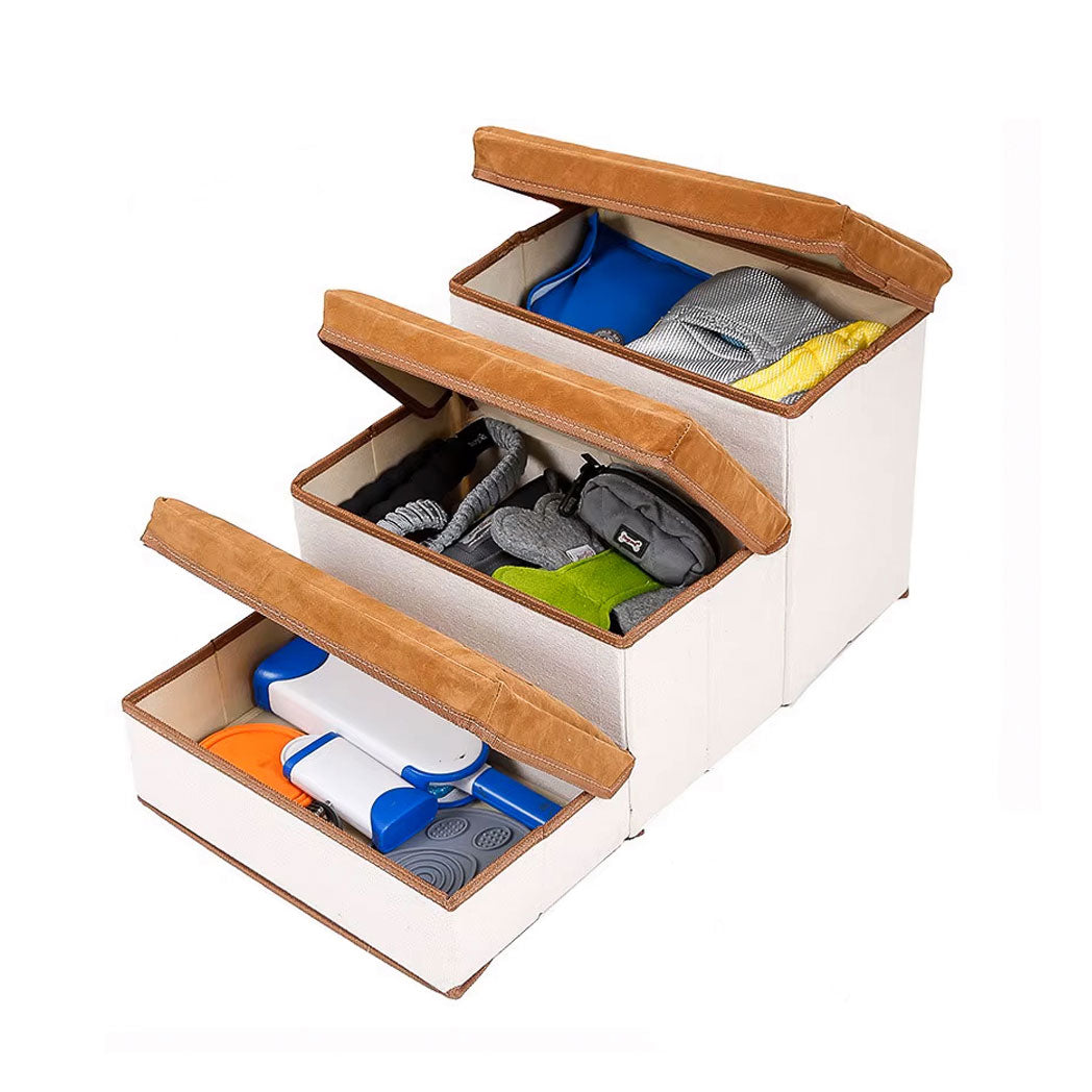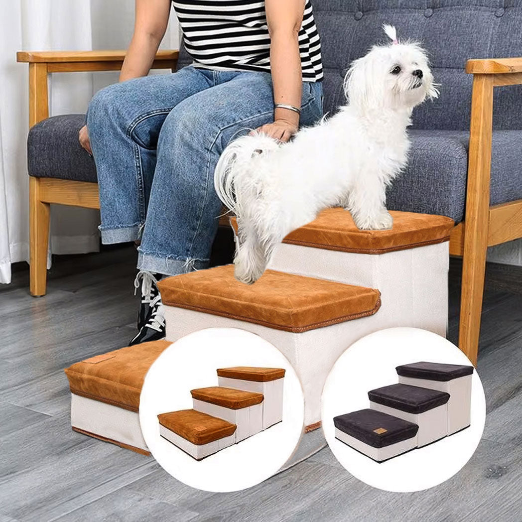 Three Step Foldable Pet Dog Stairs with Storage – Soft, Safe, and Space-Saving!