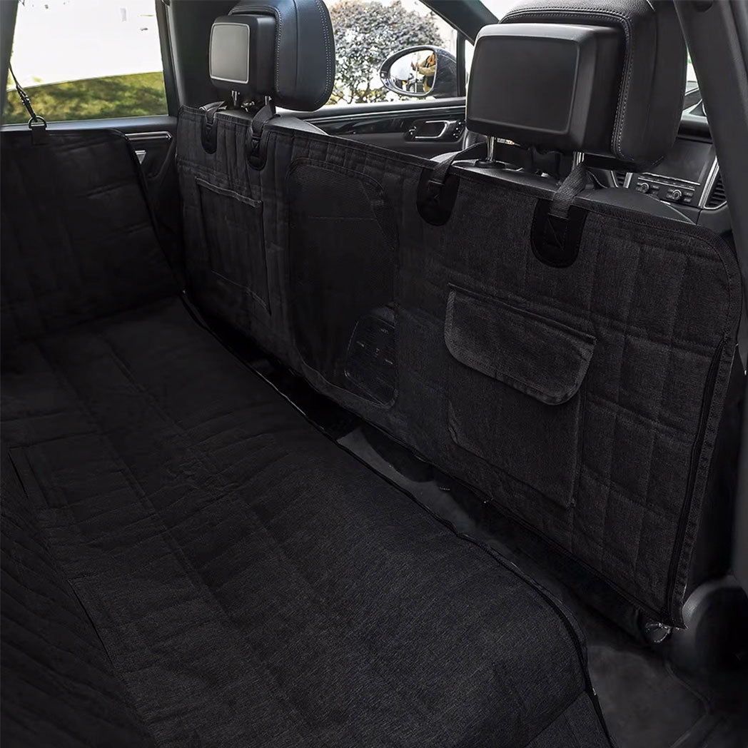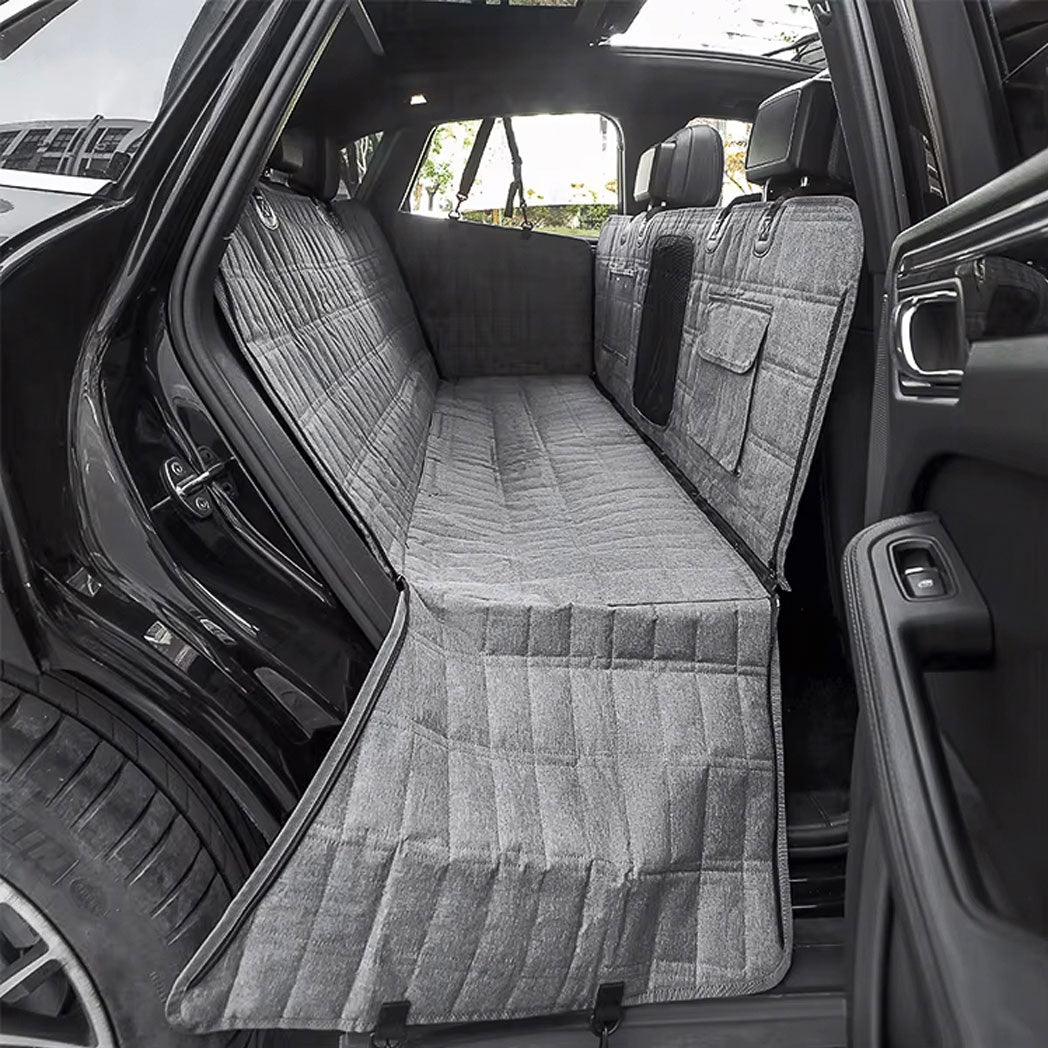 "Both of my dogs fit perfectly on this cover without any sagging or shifting. They were both comfortable and had plenty of room to stretch out. The cover is sturdy and so easy to install. I left the sides unzipped for easier in-and-out access, and the seat anchors keep it secure, even on my leather seats. If you’re on the fence, don’t hesitate—this thing is worth it!"