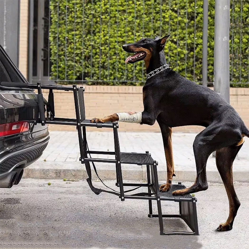 "I purchased these solid and sturdy steps for my 110-pound aging large-breed dog to help him get in and out of the back of my SUV. They easily support his weight, and the durable design ensures he can use them safely every time. Their reliable construction gives me peace of mind whenever he needs to use them."
