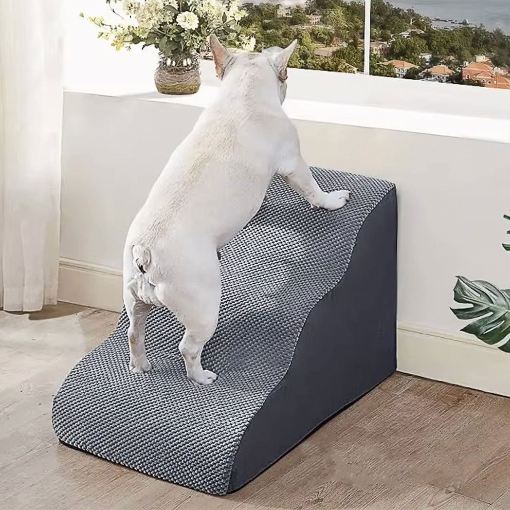 "I bought this little step for our Yorkies, and it's perfect. They figured it out quickly and use it all the time now. It arrived compacted, but once unwrapped, it expanded to full size just as described. It's soft and lightweight, making it easy to move wherever we need it."
