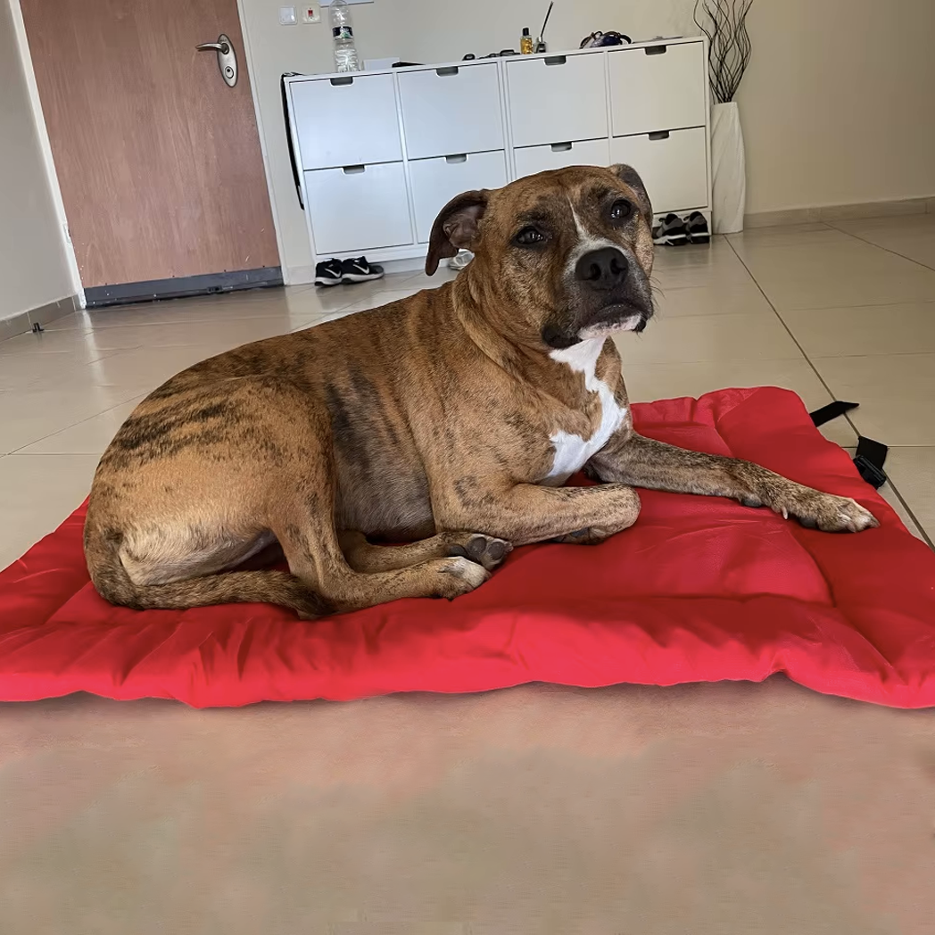 "We have an older dog dealing with incontinence, and this mat has been incredibly helpful. It protects the foam inside her bed from accidents perfectly. The material is durable but not noisy when she moves around, which is a huge plus. It's thick enough to feel high quality and super easy to take off and wash when needed. Couldn’t be happier with how well it works!"
