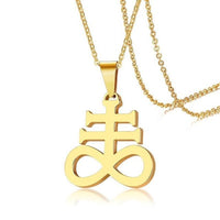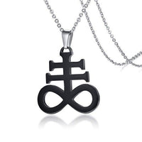 Also referred to as the cross of Satan, the Leviathan Cross carries an infinity sign at the bottom and a double-cross sign at the top. The Doublecross symbolizes protection and balance between persons while the infinity sign underlines the constant and infinite nature. It also symbolizes the eternal universe. This Leviathan cross pendant is simply crafted into a clean-cut and polished stainless steel pendant. The pendant is 37 x 38 mm in size and is available in multiple color variations: silver-plated, gold-plated, and gunmetal black-plated options. This Innovato Design piece also comes with a long 24-inch chain necklace to match the pendant finish.