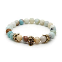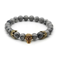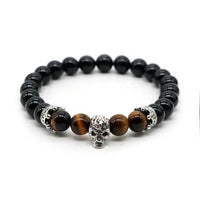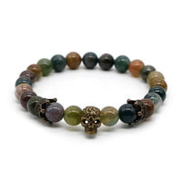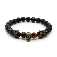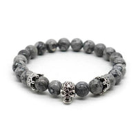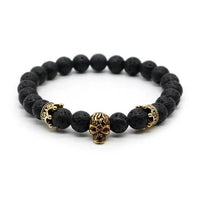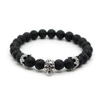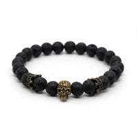 Lava Rock Stone Skull and Crown Beaded Bracelet