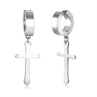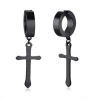 Men's Stainless Steel Black Crucifix Drop Earrings