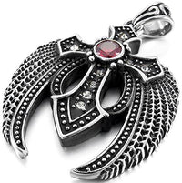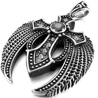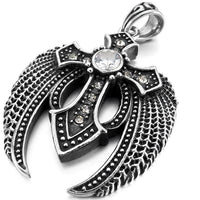 Men's Stainless Steel Pendant Necklace CZ Silver Tone Black Cross Angel Wing