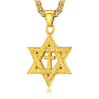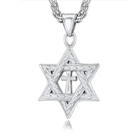 Metallic Messianic Star of David around Holy Cross Pendant Necklace