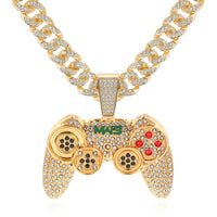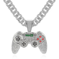 Rhinestone Studded Game Controller and Chain Link Fashion Hip-hop Cuban Pendant Necklace