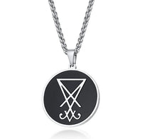 Set around a lovely silver pendant, the Leviathan Cross symbol is highlighted in a shiny silver finish and surrounded by a matte black enamel inlay. This round silver pendant has a thin metallic border. The pendant measures 39 mm x 35 mm and comes with a lovely silver link chain necklace that spans 24" in length. The thin coat of black enamel on this Innovato Design pendant gives it a matte finish that beautifully contrasts with the silver Leviathan cross symbol.