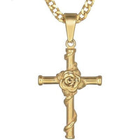 Stainless Steel Rose and Cross Pendant Chain Necklace