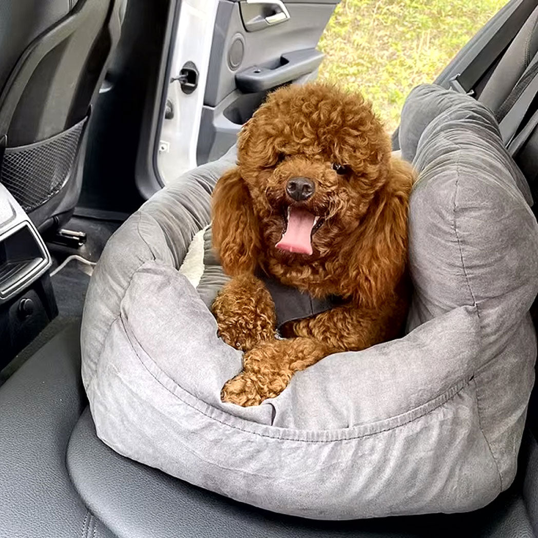 Designed with both you and your pet in mind, our car seat is packed with features that make travel easier. The detachable design allows for effortless cleaning, and the adjustable belts ensure a perfect fit for your pet. Choose from four elegant colors—dark gray, gray, red stripe, and blue—to match your style.