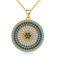 Turkish Big Blue Stone Evil Eye Hamsa 925 Sterling Silver Round Pendant Necklace