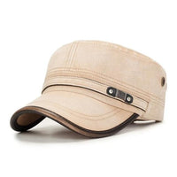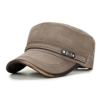 Vintage Adjustable Cotton Flat Top Army Cadet Patrol Military Cap with Polyurethane Visor
