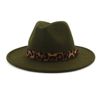 Wide Brim Felt Fedora Panama Hat with Leopard-printed Hatband
