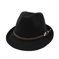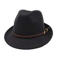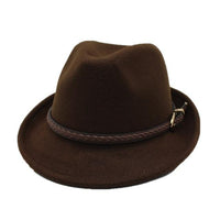 Wool Trilby Hat with Brown Leather Plaited Belt