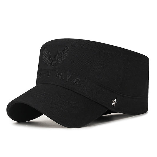 Vintage Buckled Cotton Eagle Embroidered Flat Top Snapback Army Cadet Patrol Military Cap