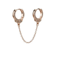 Double-Sided Cubic Zirconia Handcuffs 925 Sterling Silver Link Chain Loop Earrings