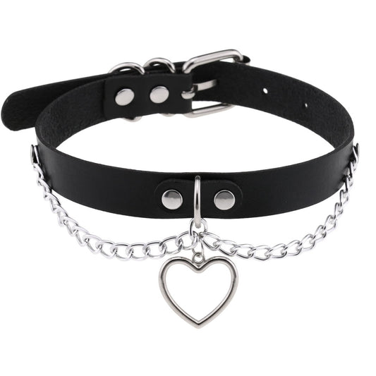 Women Leather Choker Necklace Metal Heart Collar Lock Choker Chain
