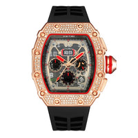 Cool Sports and Military Diamond-Studded Chronograph Silicone Band Fashion Hip-hop Quartz Watch