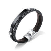 Custom Engrave Cowhide Leather and Stainless Steel Fashion Bracelet