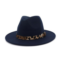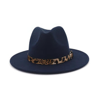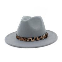 Jazzy Wool Fedora Hat with Leopard Print Belt Band