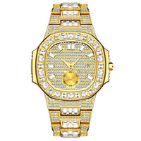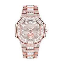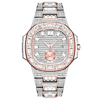 Waterproof Cubic-Zirconia-Studded Stainless Steel Band Fashion Hip-hop Quartz Watch