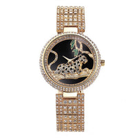 Waterproof Leopard Shining Cubic-Zirconia-Studded Stainless Steel Band Fashion Hip-hop Quartz Watch