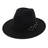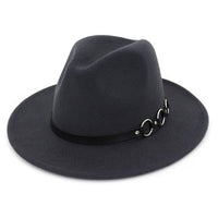 Wide Brim Vintage Felt Fedora Panama Hat with Chain Belt