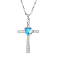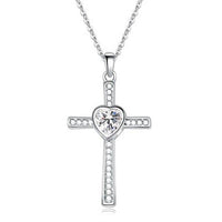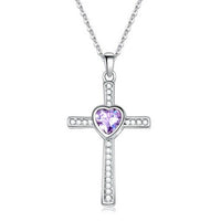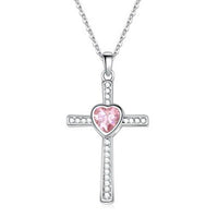 Made from a durable titanium steel alloy, this piece of jewelry is heavily embellished with glittering cubic zirconia crystals. The center piece is a large heart-shaped crystal which is available in multiple color options: Red, Purple, Blue, White, Green, Yellow, and Pink. The surrounding crystals are clear white gems that form a single row and column on the silver cross. This entire pendant is finished in a lovely silver-plated finish, which forms a thin border around all the crystals. This Innovato Design piece is a lovely accessory you can wear or a beautiful gift you can give to a friend, relative, or lover.